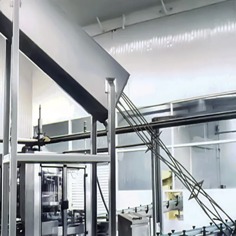 噴淋沖罐機是對易拉罐內腔及外表面自動進行噴淋殺菌,所有材料均為不銹鋼。沖罐時先將罐經過翻轉進入洗罐器,向側下方經一根帶多孔溫水管噴沖,罐隨之轉動0.5米,以達到清洗目的,然后延翻罐器滑入下一輸送鏈道。注意罐在滑道內不要間斷,以防灌行速度快水控不凈。