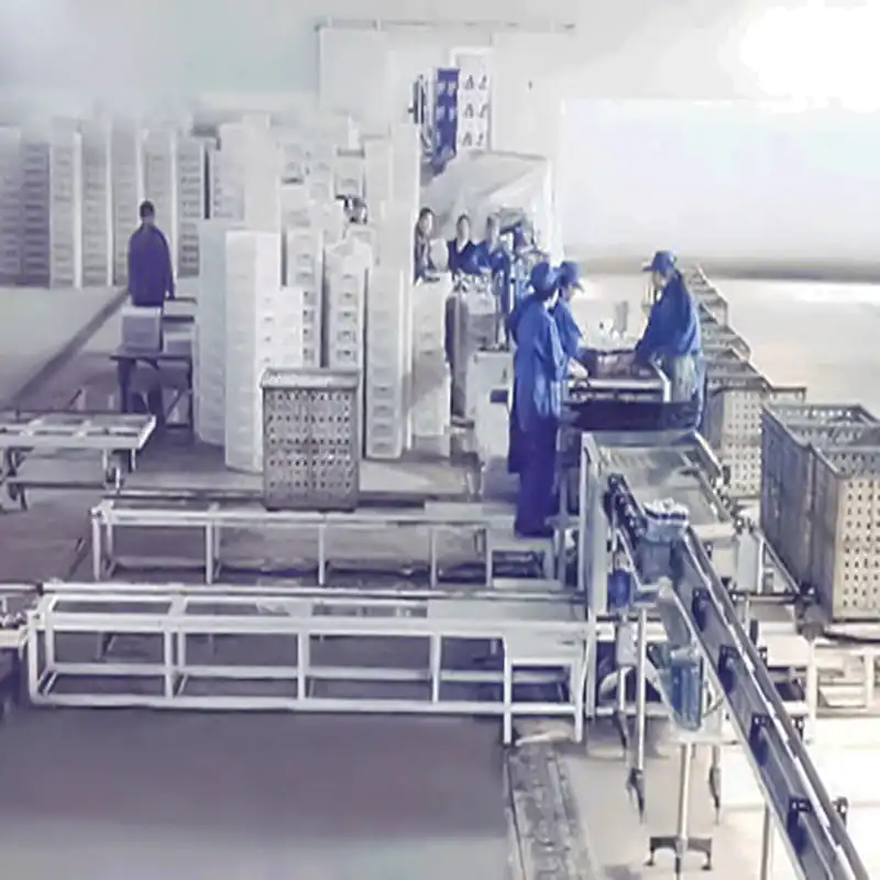 BWZX300A 自動裝卸筐機組主要有液壓升降系統(tǒng)、氣缸壓罐系統(tǒng)、氣缸推罐系統(tǒng)、網(wǎng)帶、游車等組成。可以有效減輕工人的勞動強度。